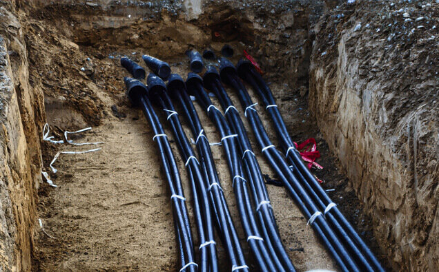 Expert cabling from network pillars to metre boxes with correct segregation, depth, and protection according to distributor requirements.